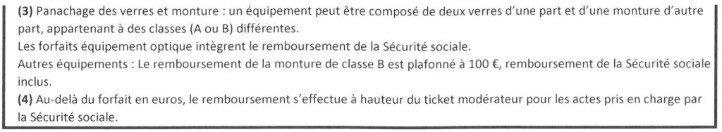 Le remboursement de la Sécurité sociale (base de 0,05 € pour la monture et 0,05 € par verre, remboursement de 0,09 €) n’est pas pris en compte dans la suite de l’exemple.