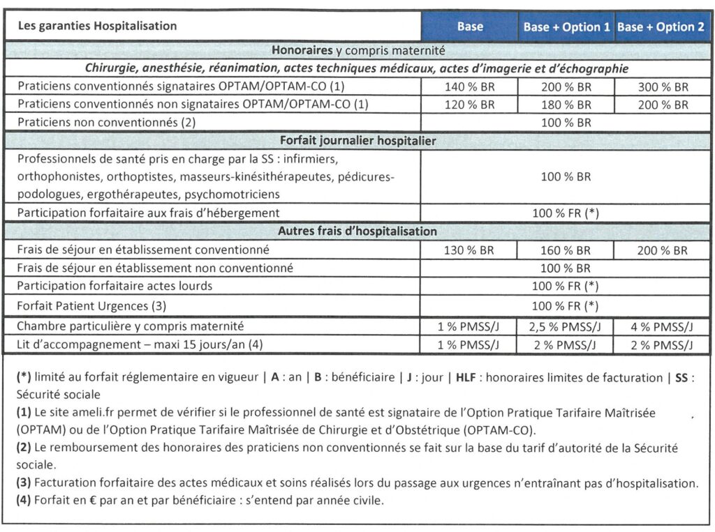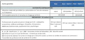 Le régime conventionnel propose 3 niveaux différents de couverture : Base, Base + Option 1, Base + Option 2.