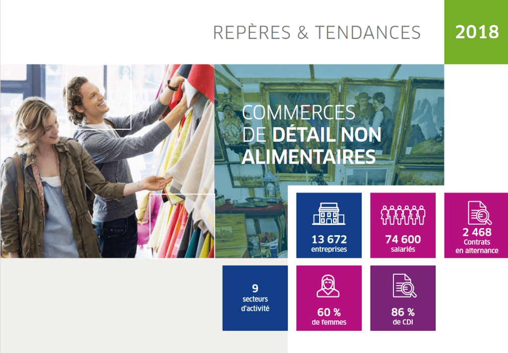Le Repères & Tendances 2018 de la branche CDNA présente la synthèse des principales données emploi-formation dans le commerce de détail non alimentaire (données 2017).